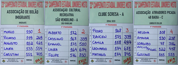 Campeonato Estadual de Bolão de Juniores Misto por Equipes de 2025: Resultados da competição